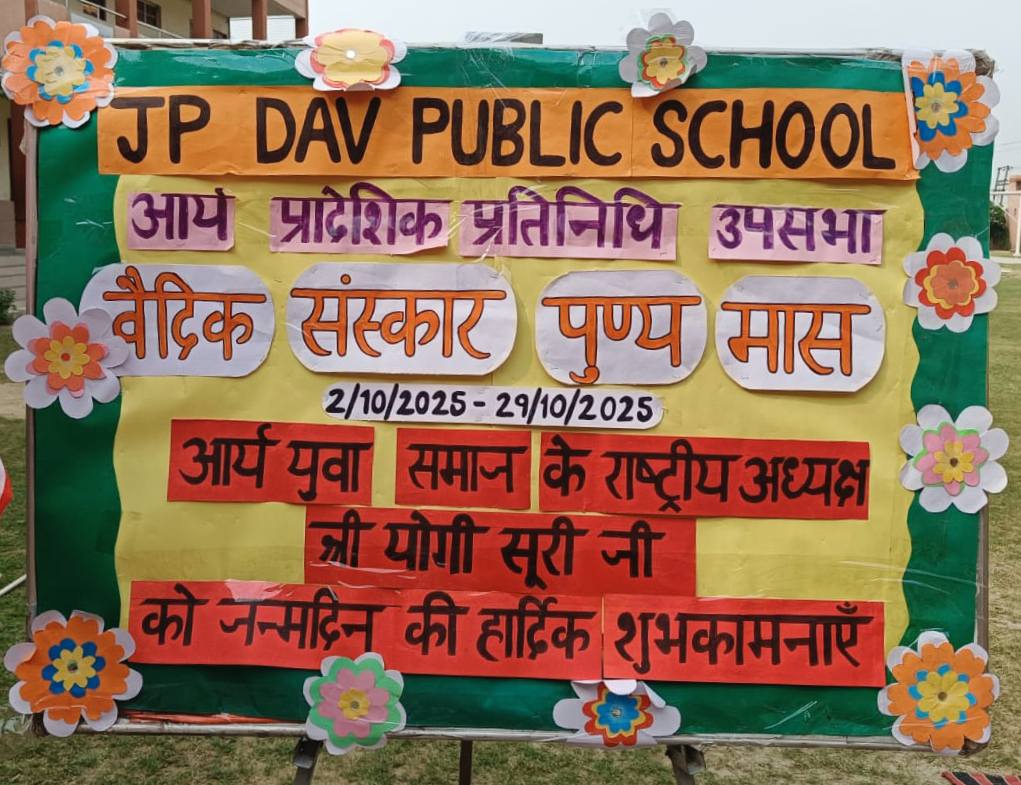 आर्य प्रादेशिक प्रतिनिधि उपसभा, हरियाणा द्वारा आयोजित वैदिक संस्कार पुण्य मास के अंतर्गत जे.पी. डी.ए.वी. पब्लिक स्कूल, गन्नौर में भाषण प्रतियोगिता, कविता गायन प्रतियोगिता एवं नुक्कड़ नाटक का सफल आयोजन किया गया।